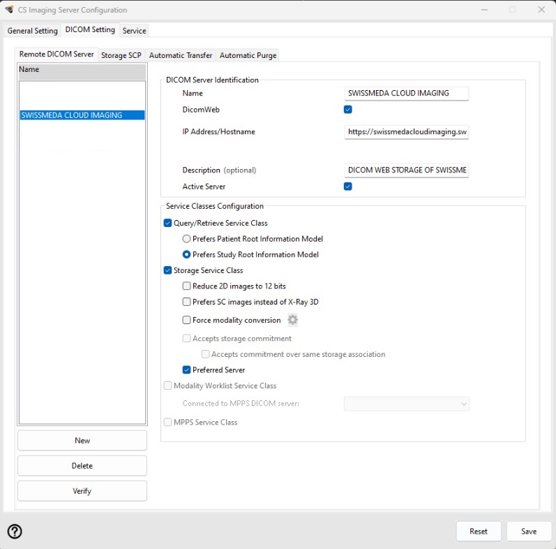 Note: The remote DICOM server is added by default throughout CSI8 Suite installation process.