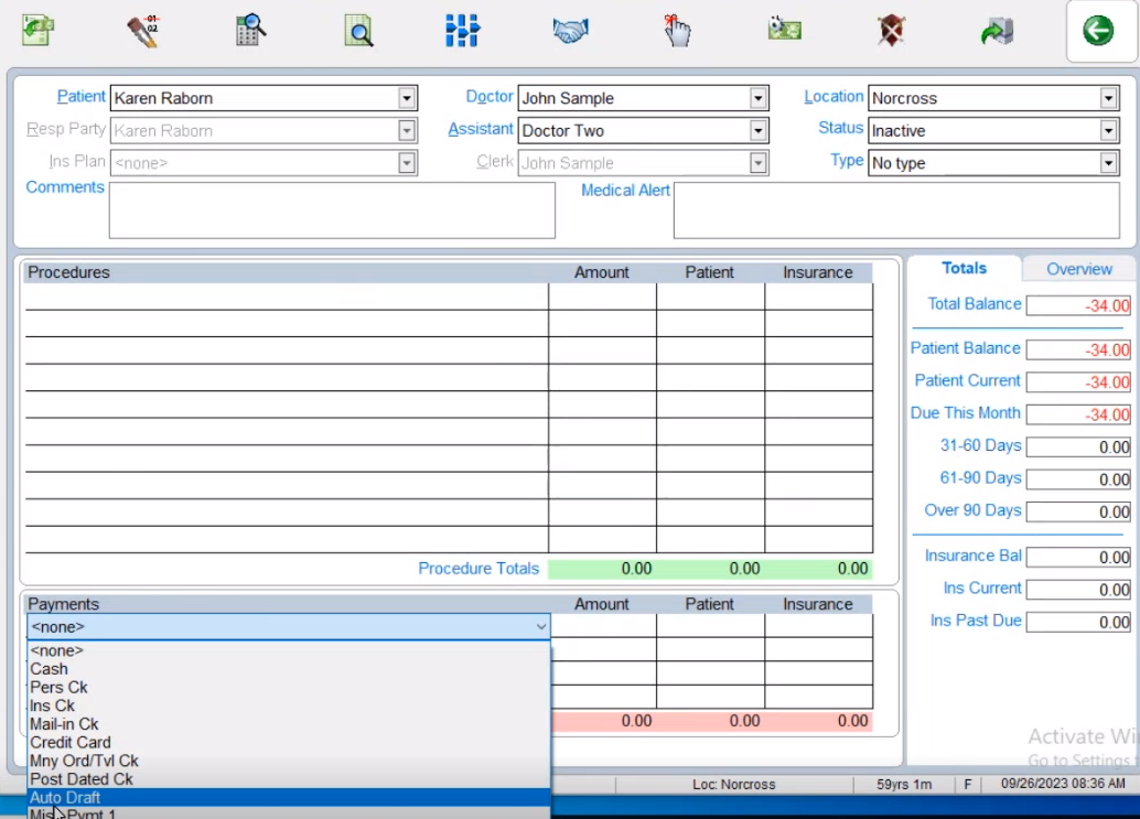 In the Patient Lookup window, find the patient and click the Financial Functions button. The patient's Financial Functions window is displayed.