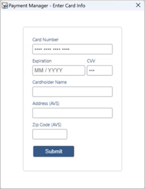 Click Submit and enter the card information into the appropriate fields.