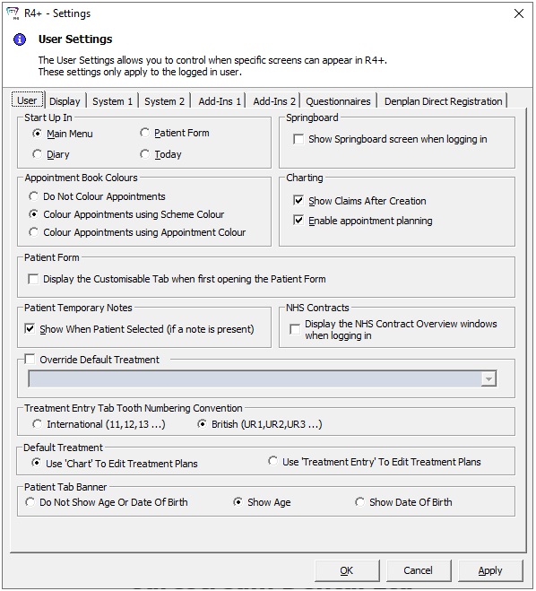 Show Claims After Creation — Select this option if you want the NHS claim form to be displayed automatically when a course of treatment is closed.