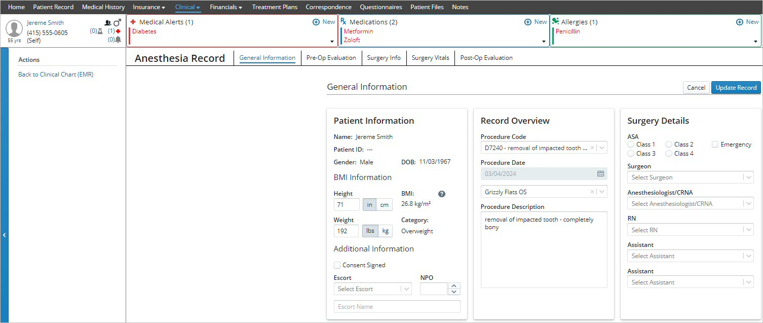 When you add or edit an Anesthesia Record, the General Information tab is displayed first.