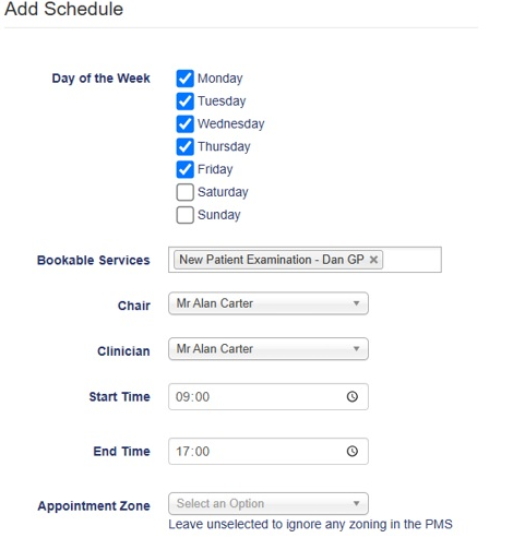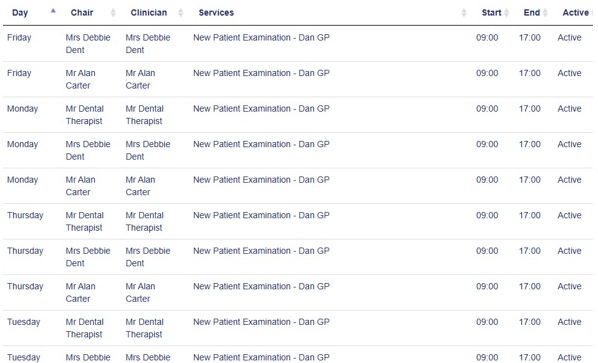 Repeat the process for each dentist. The system breaks down each day and each clinician with the time and dates so you can amend one day at a time, if necessary.