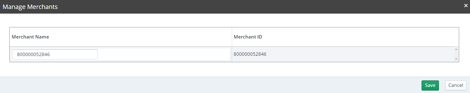 In the Payment Manager Settings window, under Actions, click Manage Merchants. The Manage Merchants window is displayed.