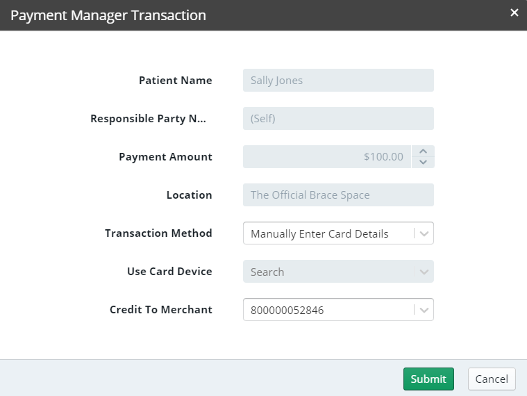 Note: When you select Manually Enter Card Details, the Use Card Device field is disabled.