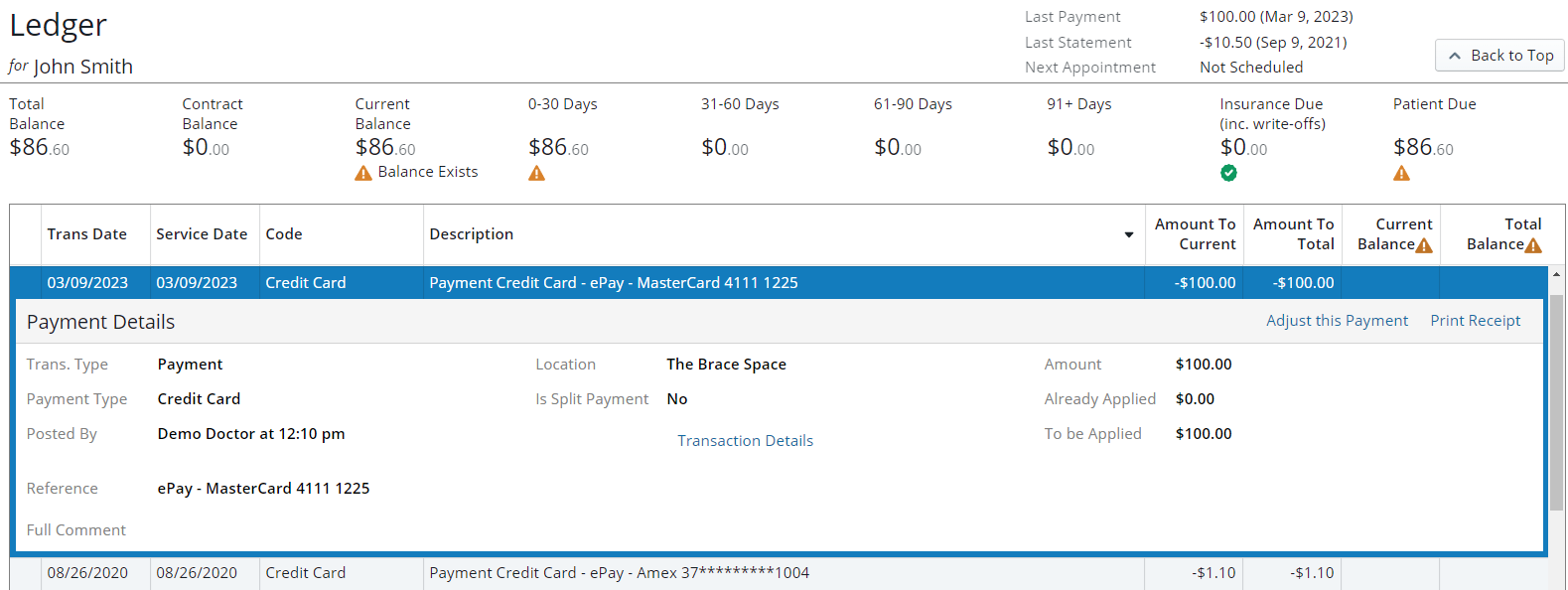 Click Adjust Payment. A message informs you that the adjustment was posted.