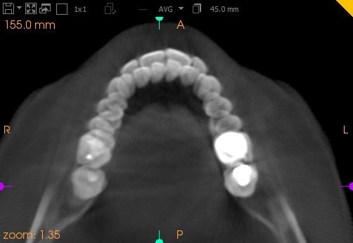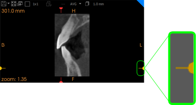 For example, if the axial slice thickness changes from 1.0 mm to 45.0 mm, the image changes to shoe the new slice thickness.