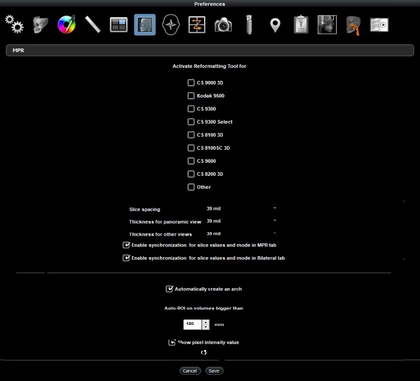 | Enable synchronization for slice values and mode in... | MPR tab |