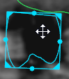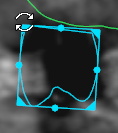 To stretch or squeeze a crown in order to adapt its shape to anatomical conditions, click one of the grab points located at the center of the sides (A), and drag the object inward or outward. Release when the crown is the desired shape; this option is not available in 3D.